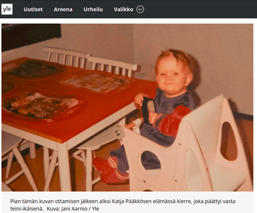 Yle kertoo 28-vuotiaasta Katja Pääkkösestä, joka sijoitettiin teininä lastenkotiin. Pääkkösen kokemukset lastenkotielämästä ovat valoisia. Hän kiittää suomalaista lastensuojelua ja lastenkotiaan ja lukee niiden ansioksi muun muassa kaksi maisterintutkintoaan. Nykyisin Pääkkönen on ammatiltaan pappi.