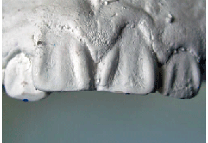 En ole esimerkiksi juuri koskaan jäljitellyt tällaista muotoa hampaan paikkauksessa. Olen asetellut etuhampaisiin satoja kertoja matriisinauhoja, kerrostanut yhdistelmämuovia ja täpännyt sitä karverilla, punssarilla ja silikaattitäppäimellä. Yrittänyt jäljitellä hampaan alkuperäistä muotokieltä. En ole koskaan yrittänyt karverilla saada aikaan tällaista poimua.