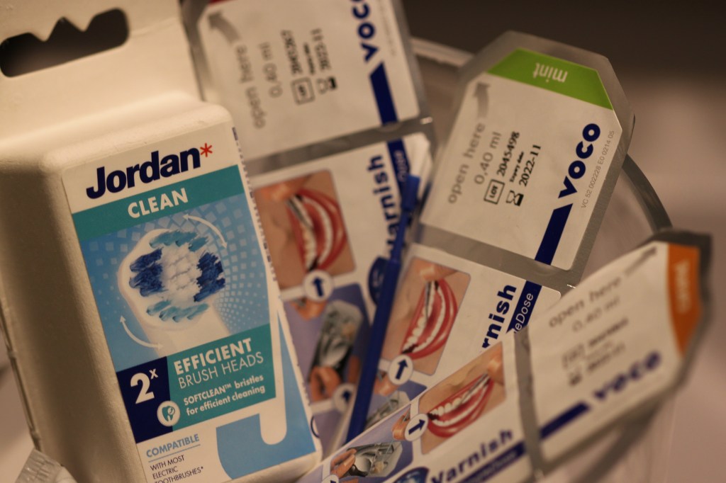 Kotiin saa tuoda millaista tahnaa vaan, kunhan siinä on iän edellyttämä pitoisuus fluoridia. Mulle ei ole merkitystä, harjaako lapsi kylpyhuoneessa istuen, seisten, hyppien tai Aku Ankkaa lukien, kunhan tulee puhdasta. Kaikki tahnamerkit on sallittuja, haalitaan milloin mistäkin. Noin muuten olen superiloinen siitä, että Suomessa valmistetaan hammastahnoja Savon Heinävedellä – nimittäin Oxygenolia. Ilahduttaa myös monien potilaiden puolesta mieto ja niin monille sopiva Salutem Turusta. Itse harjaan Zendiumilla.
